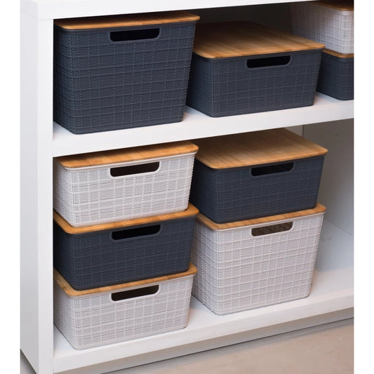 Kit Organizador Multiuso com Tampa de Bambu - 12L- Cor Branca