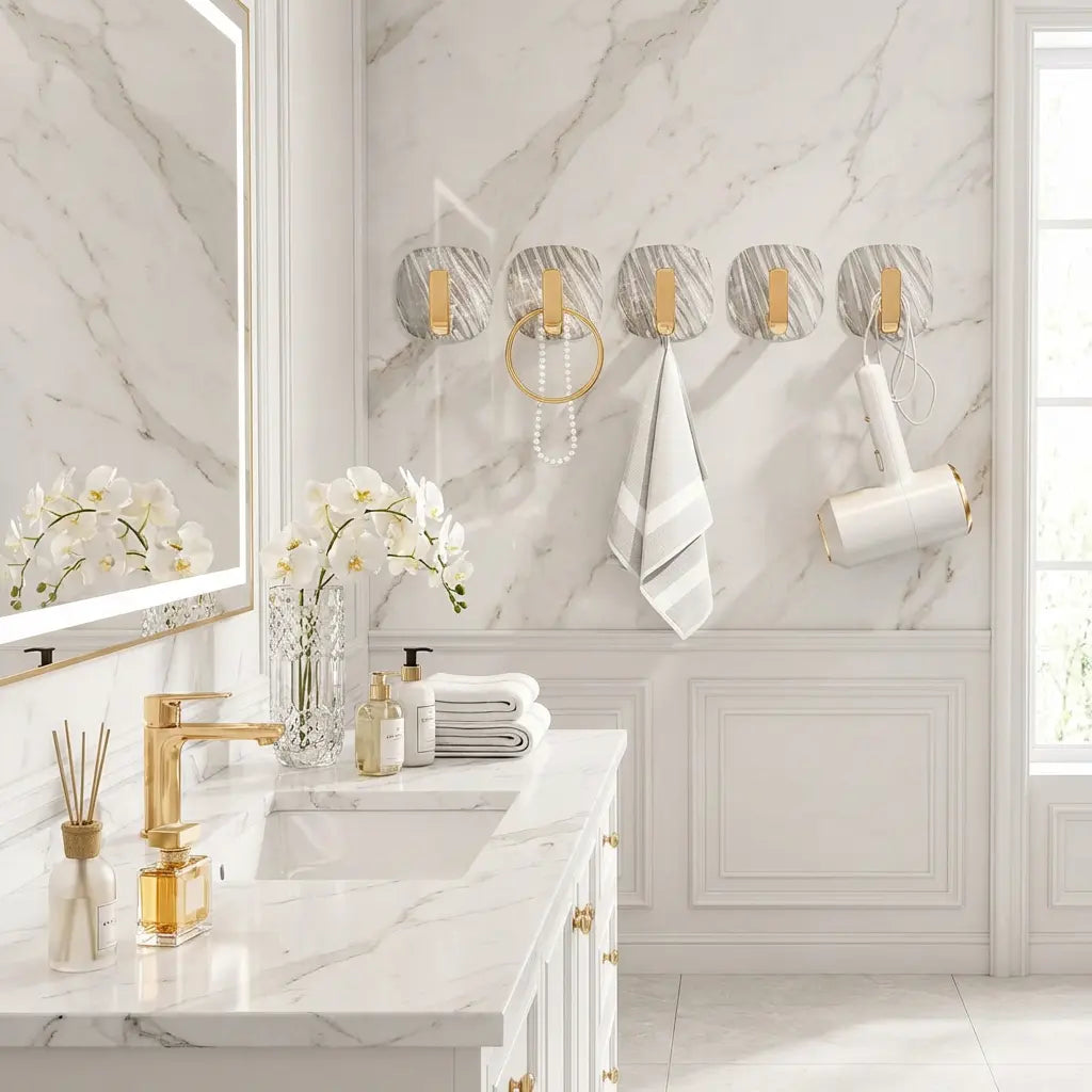 Preço unitário / porBadges: gancho acrílico autoadesivoBadges: gancho dourado transparenteBadges: Organizador de banheiro paredeBadges: organizador de cozinhaBadges: organização domésticaBadges: porta-chaves de luxoBadges: suporte de parede sem furar- 50% -